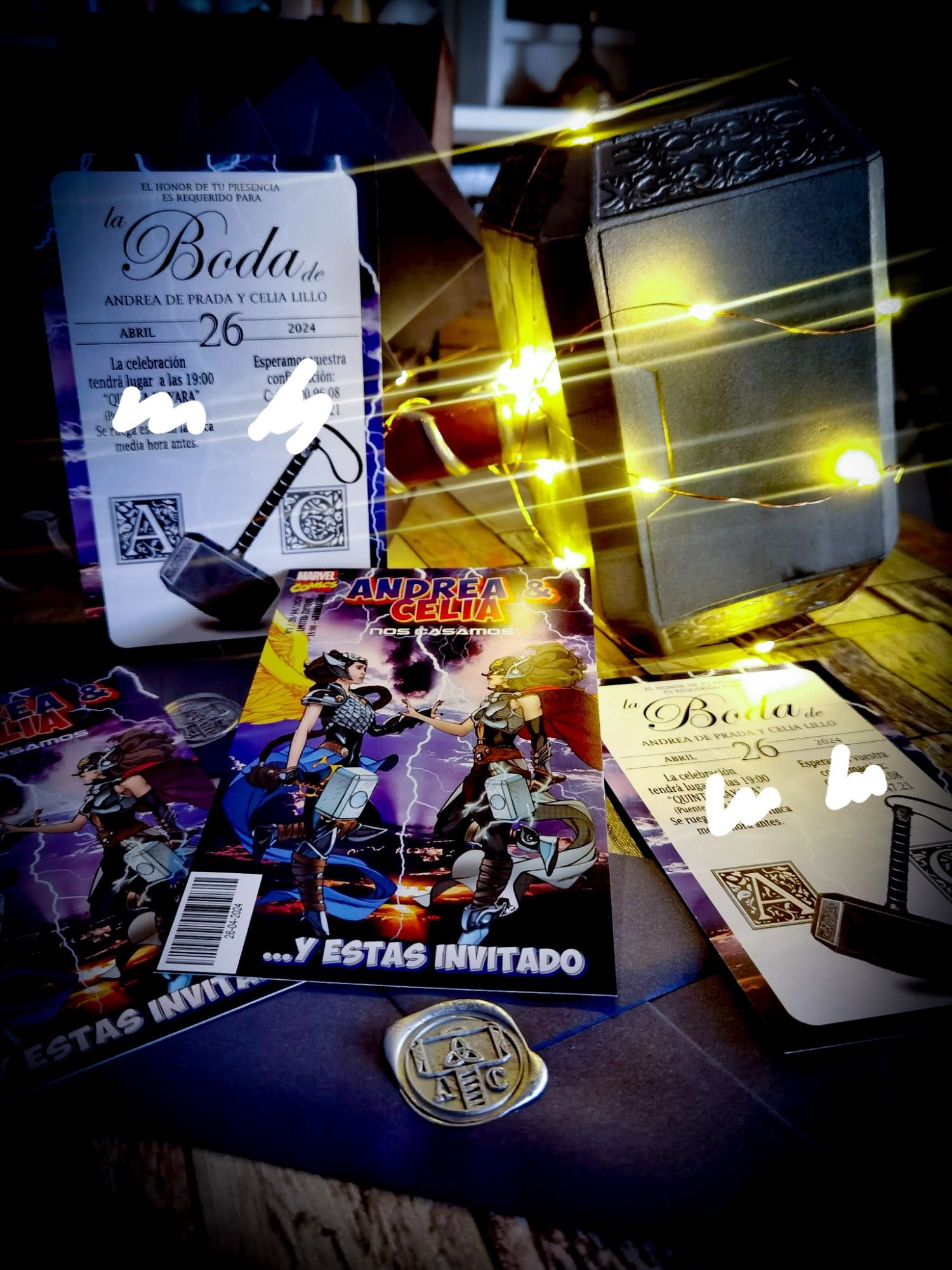 Andrea y Celia se pusieron en contacto conmigo para el diseño e impresión de las invitaciones de su boda con temática de Thor, conseguimos unas invitaciones espectaculares!!