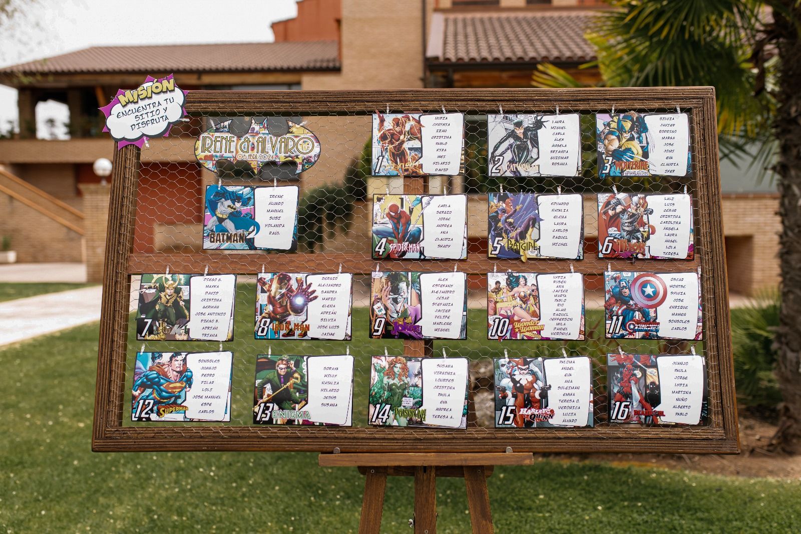 Irene y Álvaro querían una boda que sus invitados recordaran para siempre, y decidieron mezclar el universo de Marvel junto con el de DC Comics para tematizar su boda en Superhéroes y Villanos.